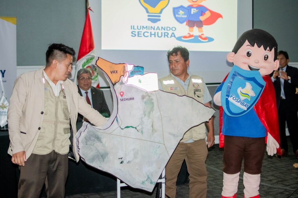 El evento incluyó el encendido de un mapa led didáctico por parte de los beneficiarios, como símbolo de la llegada de energía a cada rincón de Sechura. Asimismo, los alcaldes de Bellavista y Rinconada Llicuar entregaron reconocimientos al Fospibay en agradecimiento por la gestión que impulsa el desarrollo local.