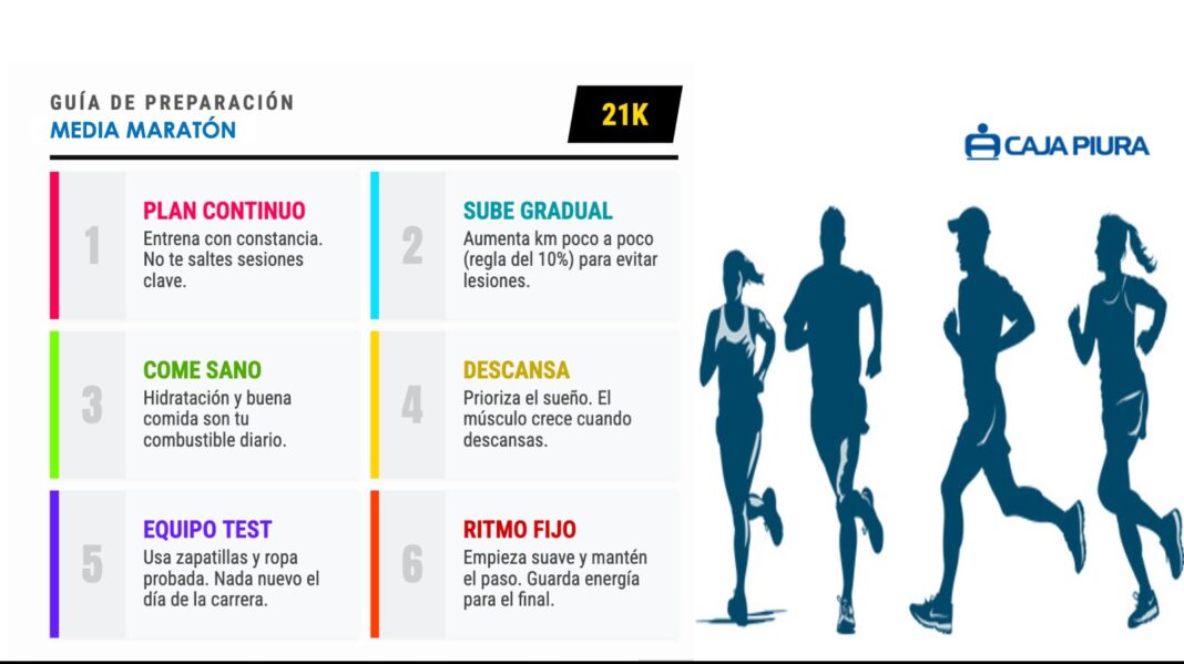 Con el objetivo de acompañar a los corredores en su proceso, compartimos una guía práctica con seis recomendaciones esenciales que ayudarán a mejorar el rendimiento, evitar lesiones y afrontar los 21K con confianza y seguridad.