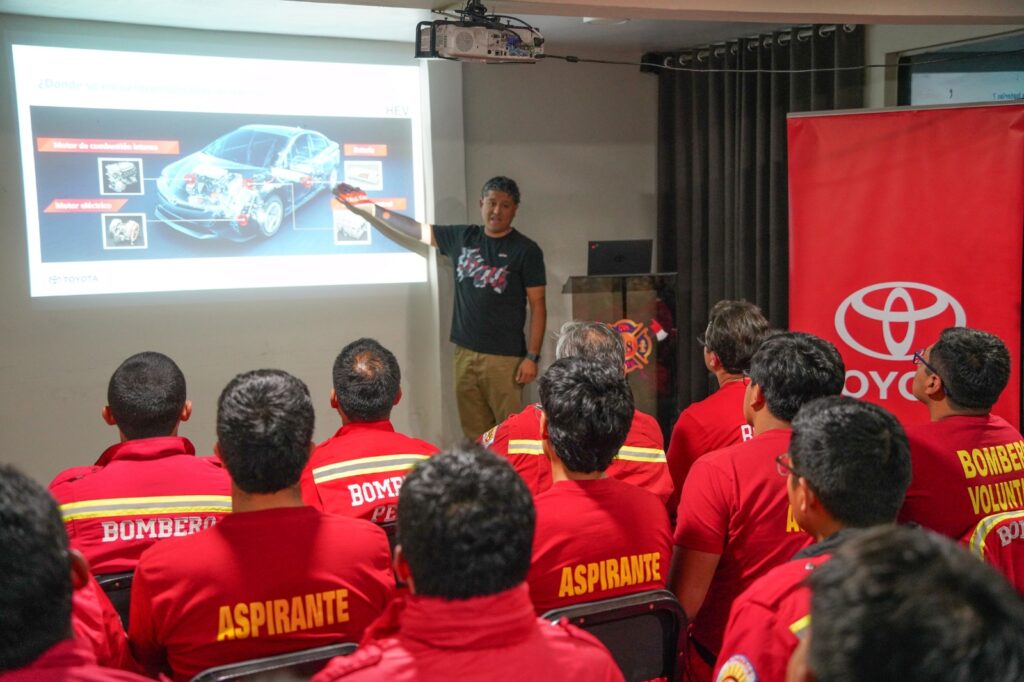La capacitación estuvo a cargo del equipo técnico de Toyota, con la participación de David Caro, gerente de Planificación Corporativa y Asuntos Corporativos; Luis Sanjinés, Especialista Senior de Soporte Técnico y Garantías y Stephanie Guerra, Especialista de Asuntos Corporativos, quienes explicaron los beneficios de la movilidad electrificada, la estrategia de Múltiples Opciones Tecnológicas de Toyota, y resolvieron consultas sobre seguridad y procedimientos de intervención.