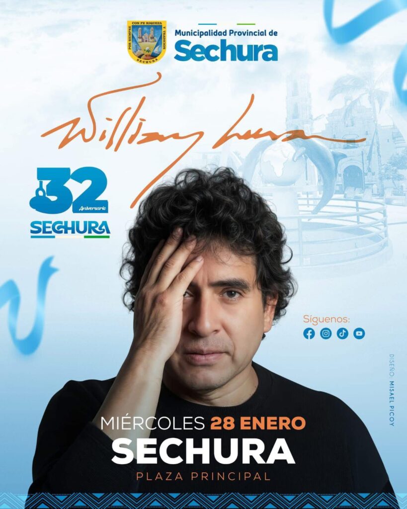 La música y el sentimiento serán protagonistas en las celebraciones por el 32° aniversario de la provincia de Sechura, con la presentación estelar del reconocido cantautor William Luna, quien ofrecerá un concierto especial durante la serenata programada para el próximo 28 de enero, gracias al auspicio de Compañía Minera Miski Mayo.