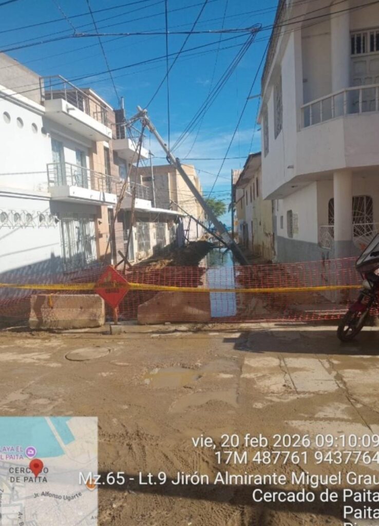 Paita: Enosa interviene y asegura postes en riesgo de caída por excavaciones