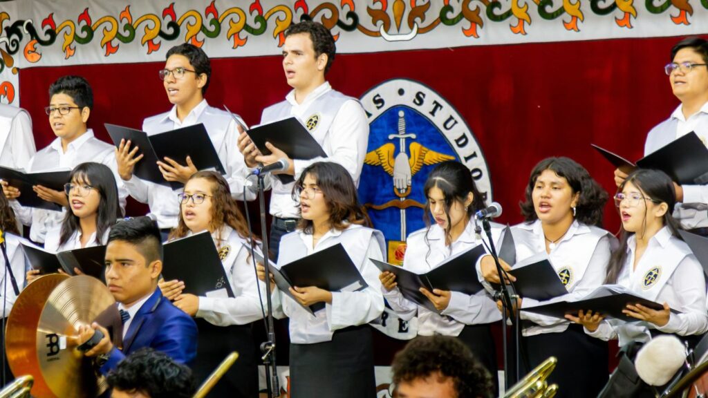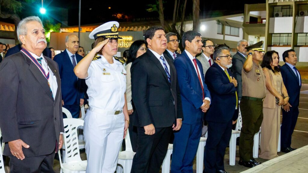 Posteriormente, a las 8:00 p. m., comenzó el acto de Inauguración Oficial del Año Académico de la UDEP, con un solemne desfile del claustro de profesores y las autoridades académicas que, engalanados con sus tradicionales vestes, marcharon al compás de las notas del Gaudeamus Igitur, entonado por el Coro Universitario y acompañado por la Orquesta Sinfónica de la universidad.